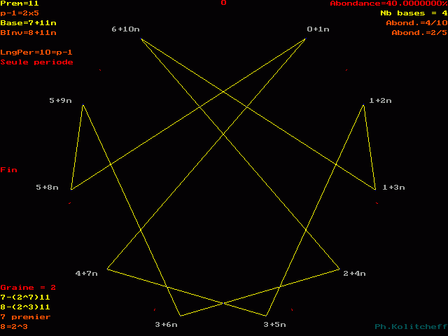 Les points du graphe (les facteurs de n) sont disposés dans l'ordre suivant en base 7+11n :