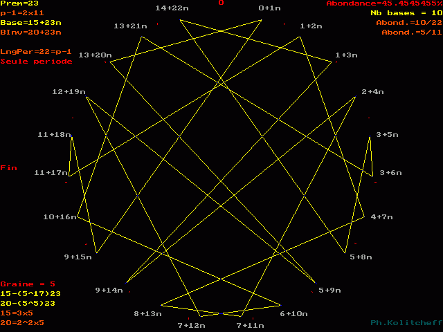 L'inverse de 20 étant (15) le plus petit, c'est le graphe de 15 + 23n qui répertorie les bases de forme 20 + 23n :