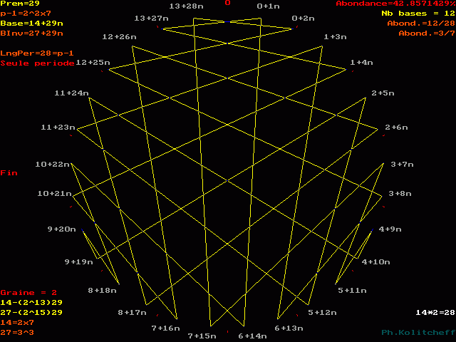 Les points du graphe (les facteurs de n) sont disposés dans l'ordre suivant en base 14+29n :