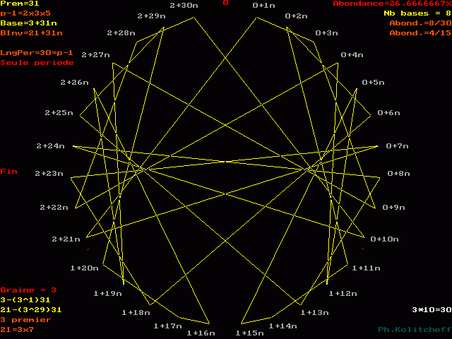 L'inverse de 21 étant (3) le plus petit, c'est le graphe de 3 + 31n qui répertorie les bases de forme 21 + 31n :