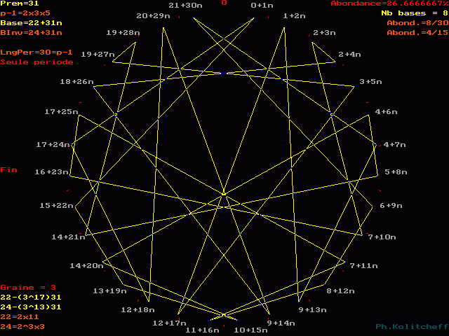L'inverse de 24 étant (22) le plus petit, c'est le graphe de 22 + 31n qui répertorie les bases de forme 24 + 31n :