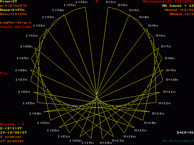 L'inverse de 19 étant (2) le plus petit, c'est le graphe de 2 + 37n qui répertorie les bases de forme 19 + 37n :