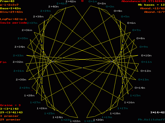 Les points du graphe (les facteurs de n) sont disposés dans l'ordre suivant en base 3+43n :