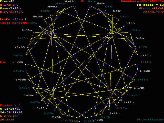 Les points du graphe (les facteurs de n) sont disposés dans l'ordre suivant en base 5+43n :