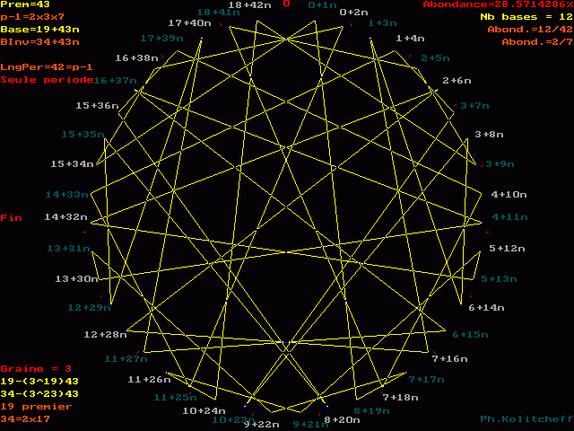 L'inverse de 34 étant (19) le plus petit, c'est le graphe de 19 + 43n qui répertorie les bases de forme 34 + 43n :