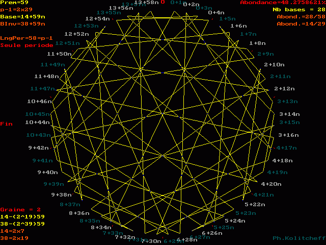 Les points du graphe (les facteurs de n) sont disposés dans l'ordre suivant en base 14+59n :