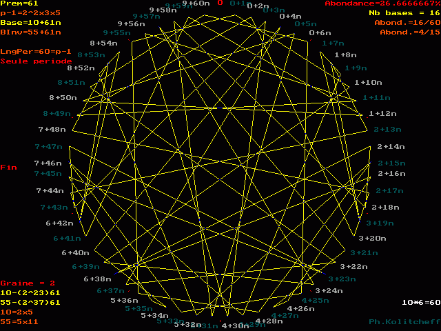 Les points du graphe (les facteurs de n) sont disposés dans l'ordre suivant en base 10+61n :