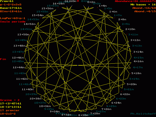 L'inverse de 18 étant (17) le plus petit, c'est le graphe de 17 + 61n qui répertorie les bases de forme 18 + 61n :