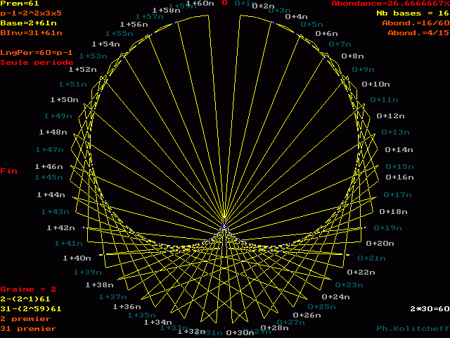 L'inverse de 31 étant (2) le plus petit, c'est le graphe de 2 + 61n qui répertorie les bases de forme 31 + 61n :