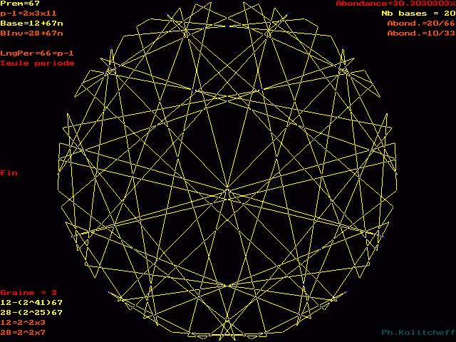 Les points du graphe (les chiffres de la période) sont disposés dans l'ordre suivant en base 12+67n :