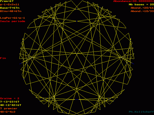 L'inverse de 48 étant (7) le plus petit, c'est le graphe de 7 + 67n qui répertorie les bases de forme 48 + 67n :
