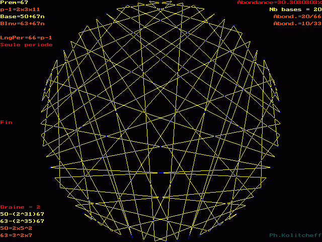 Les points du graphe (les chiffres de la période) sont disposés dans l'ordre suivant en base 50+67n :