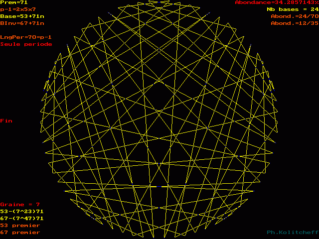 Les points du graphe (les chiffres de la période) sont disposés dans l'ordre suivant en base 53+71n :