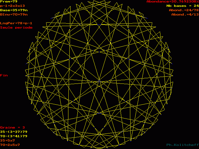 L'inverse de 70 étant (35) le plus petit, c'est le graphe de 35 + 79n qui répertorie les bases de forme 70 + 79n :