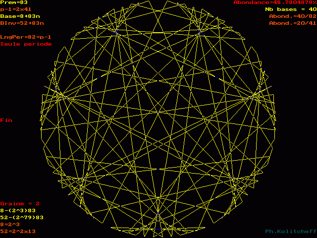 Les points du graphe (les chiffres de la période) sont disposés dans l'ordre suivant en base 8+83n :
