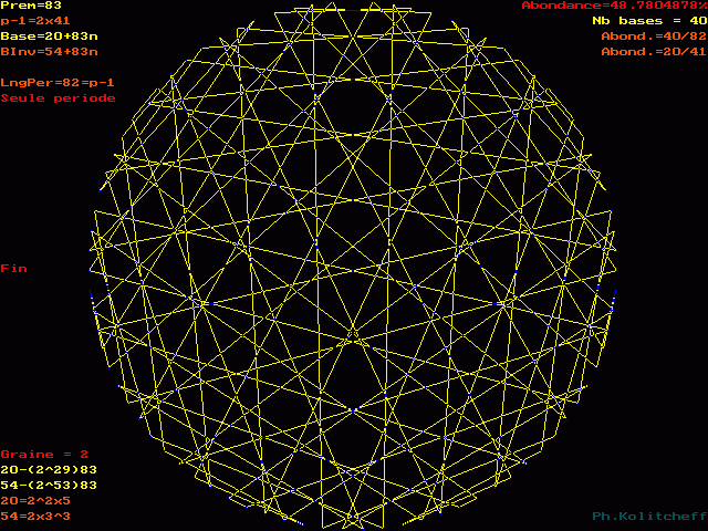 Les points du graphe (les chiffres de la période) sont disposés dans l'ordre suivant en base 20+83n :