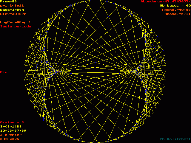 L'inverse de 30 étant (3) le plus petit, c'est le graphe de 3 + 89n qui répertorie les bases de forme 30 + 89n :