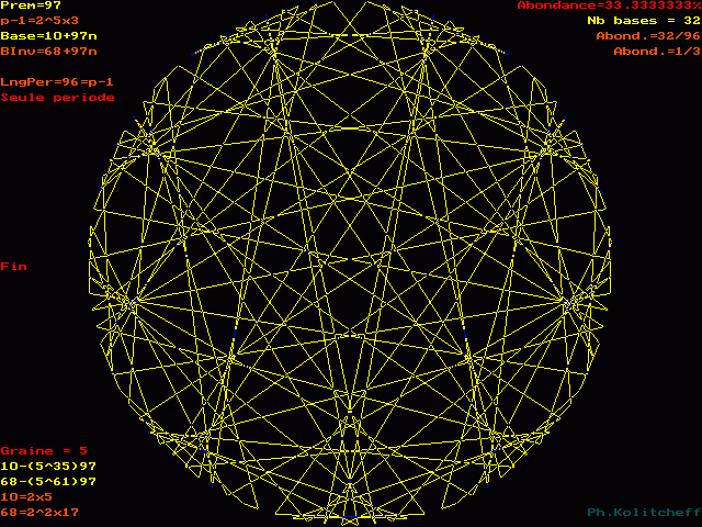 Les points du graphe (les chiffres de la période) sont disposés dans l'ordre suivant en base 10+97n :
