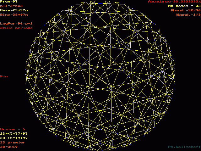 Les points du graphe (les chiffres de la période) sont disposés dans l'ordre suivant en base 23+97n :
