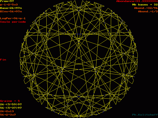 Les points du graphe (les chiffres de la période) sont disposés dans l'ordre suivant en base 26+97n :