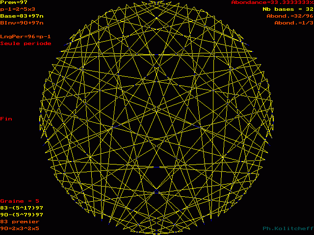 L'inverse de 90 étant (83) le plus petit, c'est le graphe de 83 + 97n qui répertorie les bases de forme 90 + 97n :
