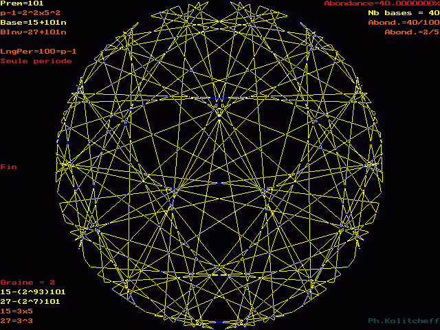 L'inverse de 27 étant (15) le plus petit, c'est le graphe de 15 + 101n qui répertorie les bases de forme 27 + 101n :