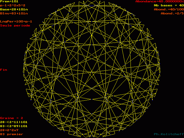 L'inverse de 83 étant (28) le plus petit, c'est le graphe de 28 + 101n qui répertorie les bases de forme 83 + 101n :