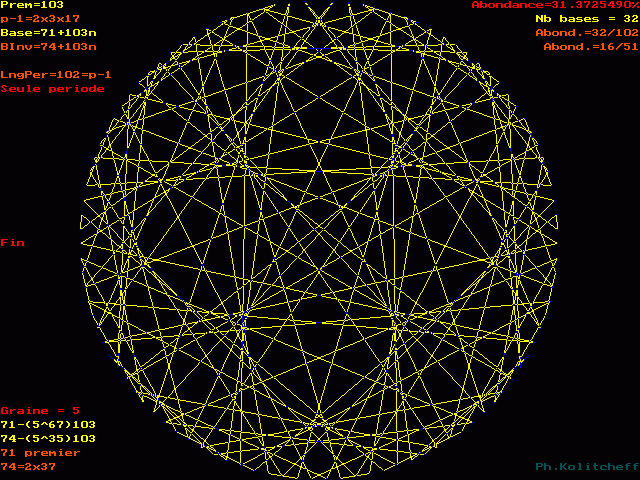 Les points du graphe (les chiffres de la période) sont disposés dans l'ordre suivant en base 71+103n :