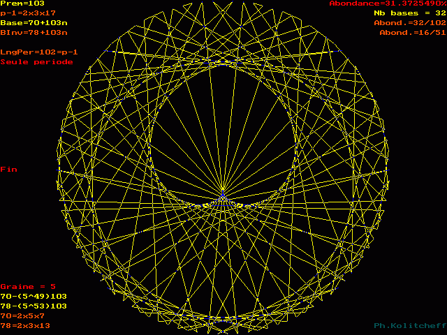 L'inverse de 78 étant (70) le plus petit, c'est le graphe de 70 + 103n qui répertorie les bases de forme 78 + 103n :