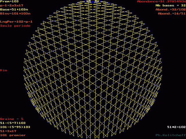 L'inverse de 101 étant (51) le plus petit, c'est le graphe de 51 + 103n qui répertorie les bases de forme 101 + 103n :