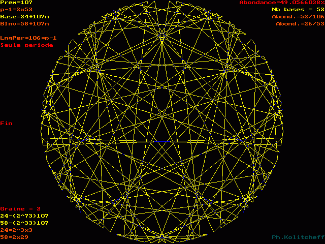Les points du graphe (les chiffres de la période) sont disposés dans l'ordre suivant en base 24+107n :