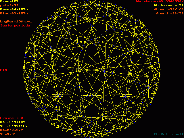 L'inverse de 93 étant (84) le plus petit, c'est le graphe de 84 + 107n qui répertorie les bases de forme 93 + 107n :