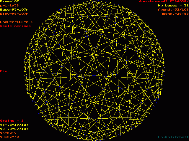 Les points du graphe (les chiffres de la période) sont disposés dans l'ordre suivant en base 95+107n :