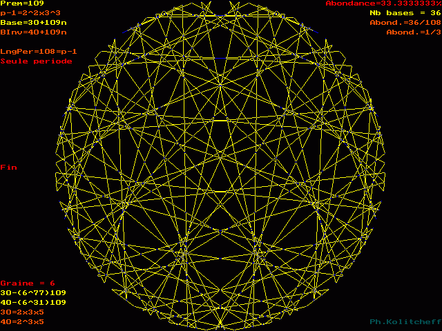 L'inverse de 40 étant (30) le plus petit, c'est le graphe de 30 + 109n qui répertorie les bases de forme 40 + 109n :