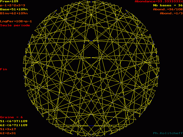 L'inverse de 62 étant (51) le plus petit, c'est le graphe de 51 + 109n qui répertorie les bases de forme 62 + 109n :