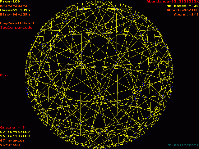 Les points du graphe (les chiffres de la période) sont disposés dans l'ordre suivant en base 67+109n :