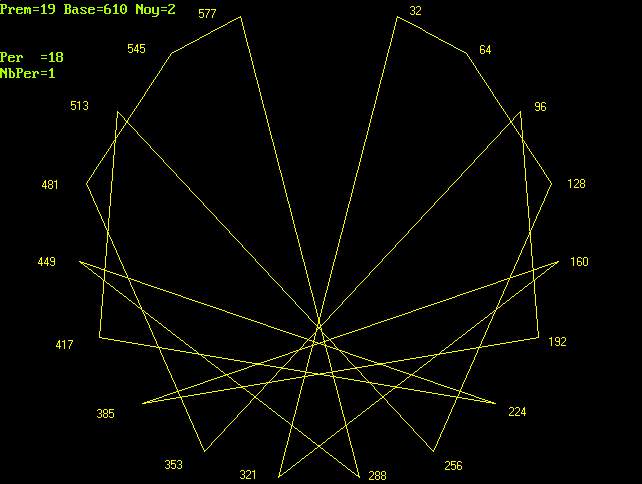 Si l'on calcule 1/ 19 en base 610 (2 + (32 x 19)) on obtient la période :