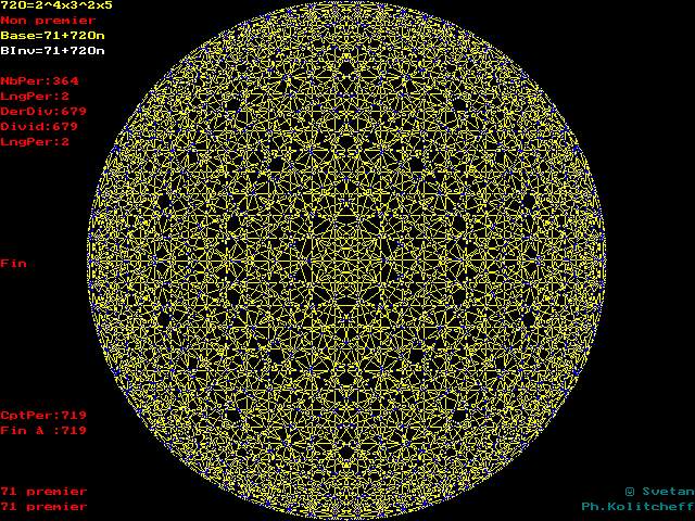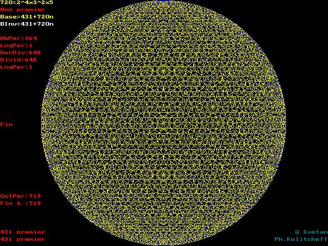 Le numéroscope (à l'aide de la touche <Fin>) répertorie les bases qui multipliées par elles-mêmes fournissent 1 comme reste dans la division par 720 (ou autre inférieur à 5000). Ces bases sont alors leur propre inverse modulo 720.