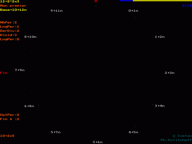 Les fractions de 12 en base 10 sont représentées sur la figure suivante :
