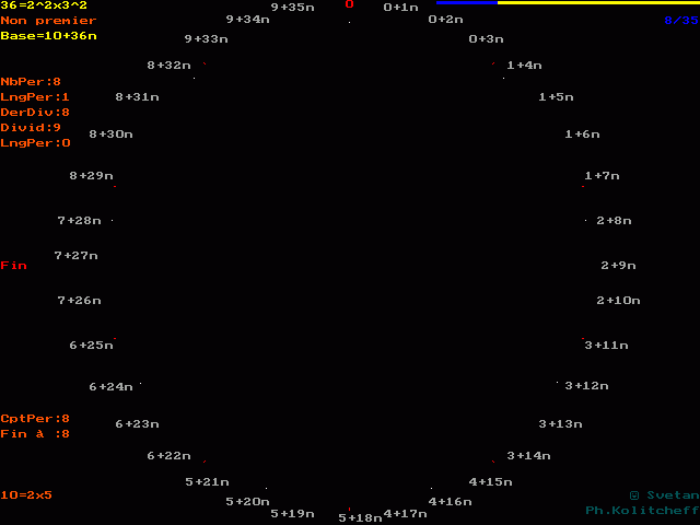 Les fractions de 36 en base 10 sont représentées sur la figure suivante :