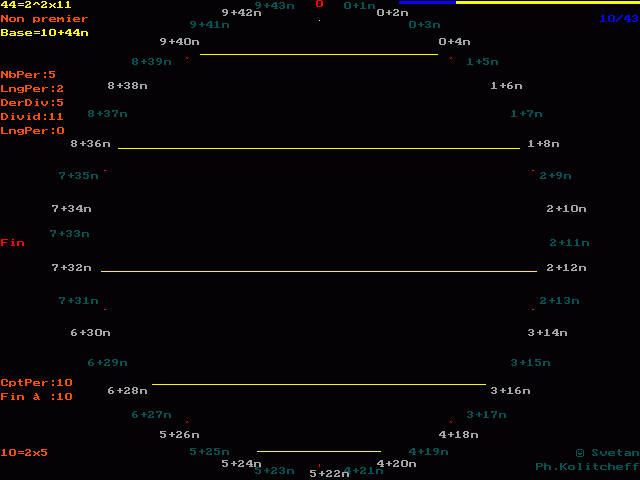 Les fractions de 44 en base 10 sont représentées sur la figure suivante :