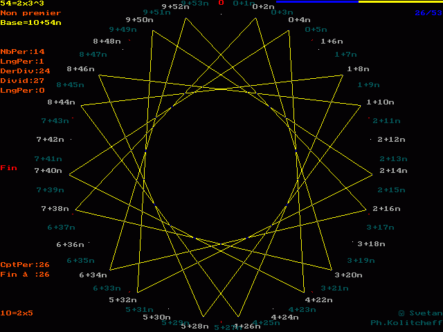 Les fractions de 54 en base 10 sont représentées sur la figure suivante :