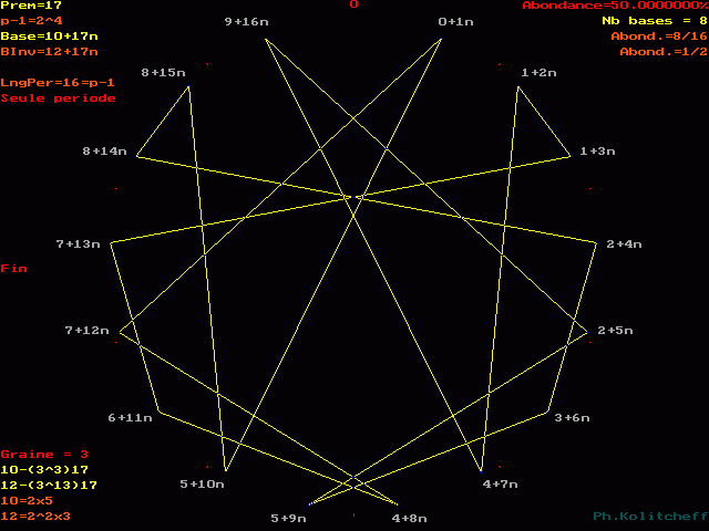 Les fractions de 17 en base 10 sont représentées sur la figure suivante :