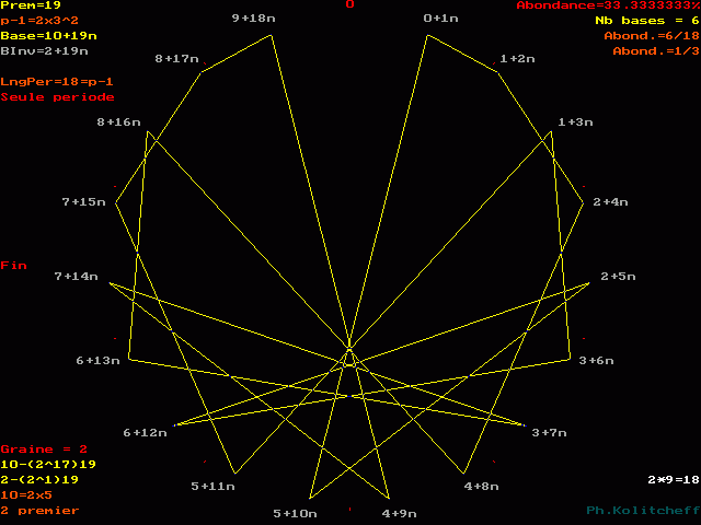 Les fractions de 19 en base 10 sont représentées sur la figure suivante :