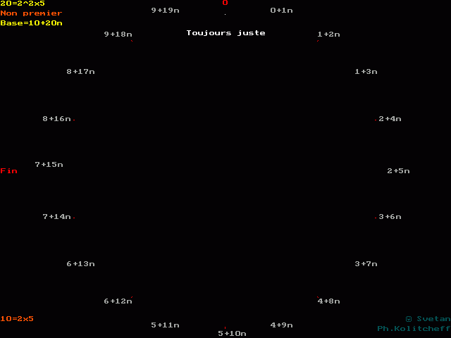 Les fractions de 20 en base 10 sont représentées sur la figure suivante :